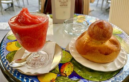 Nun geht es zurück nach Sizilien. Von dort reisen Sie weiter nach Toarmina am Ionischen Meer. Von der Stadt auf dem hohen Felsen aus erblicken Sie den berühmten Ätna.