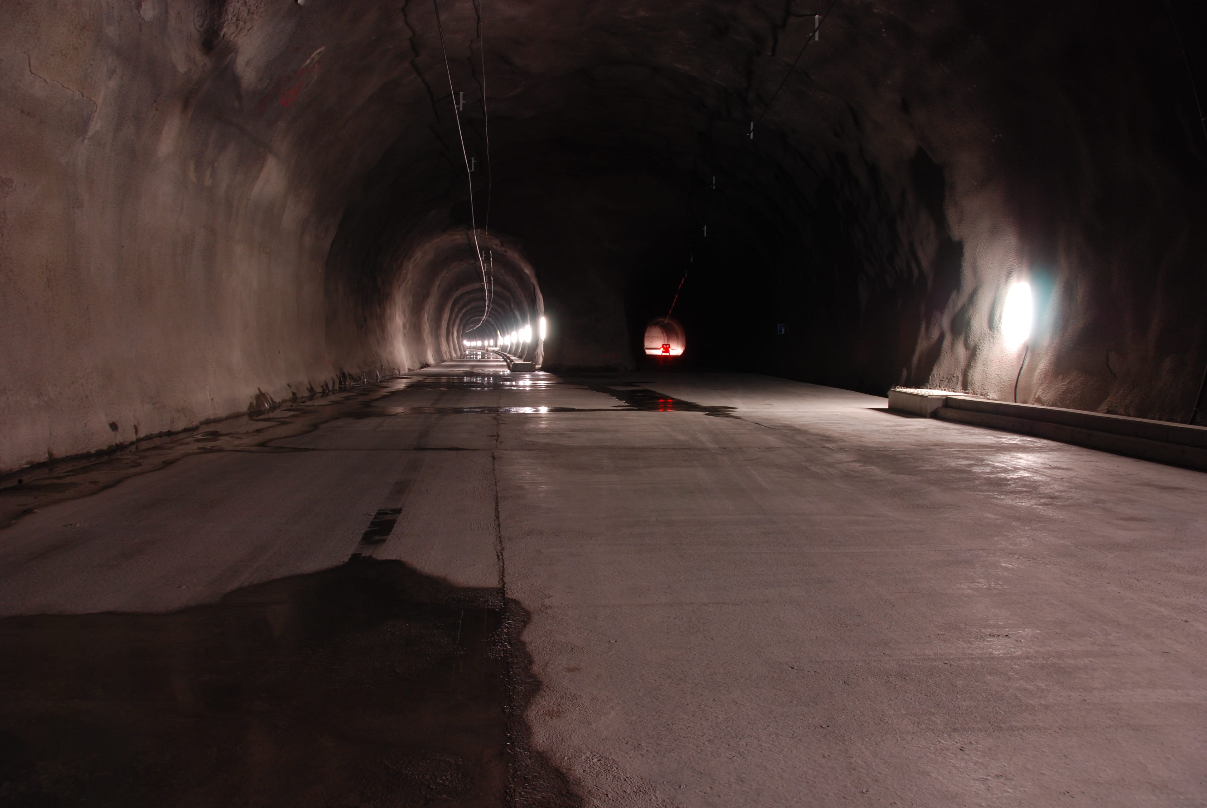 - 34.6 Kilometer lang ist der Basistunnel. Davon sind aber bis heute nur 14 Kilometer zweispurig befahrbar. Ein Teil der westlichen Röhre ist noch im Rohbau, ein weiterer noch nicht ausgebrochen.