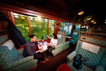 Käse und Wurstspezialitäten: Im Degustationswagen 2. Klasse oder in den wunderschönen Belle-Epoque-Wagen 1. und 2. Klasse servieren wir Ihnen auf einem Holzbrettchen eine Auswahl an heimischen Spezialitäten. Dazu mundet ein Glas eines auserlesenen Weins vom Genfersee. Eine Reservierung fürs Essen wird sehr empfohlen. Preis CHF 25.00.