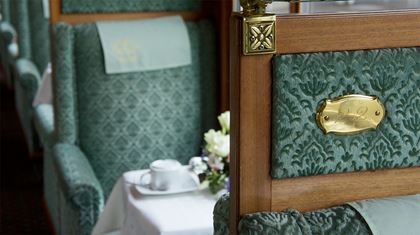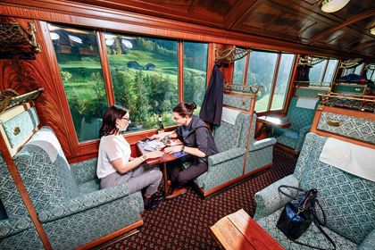 Lassen Sie sich im GoldenPass Classic bedienen wie ein König. Und geniessen Sie im luxuriösen Sessel sitzend bei einem Glas Champagner die Aussicht auf die vorbeiziehende Alpenwelt.